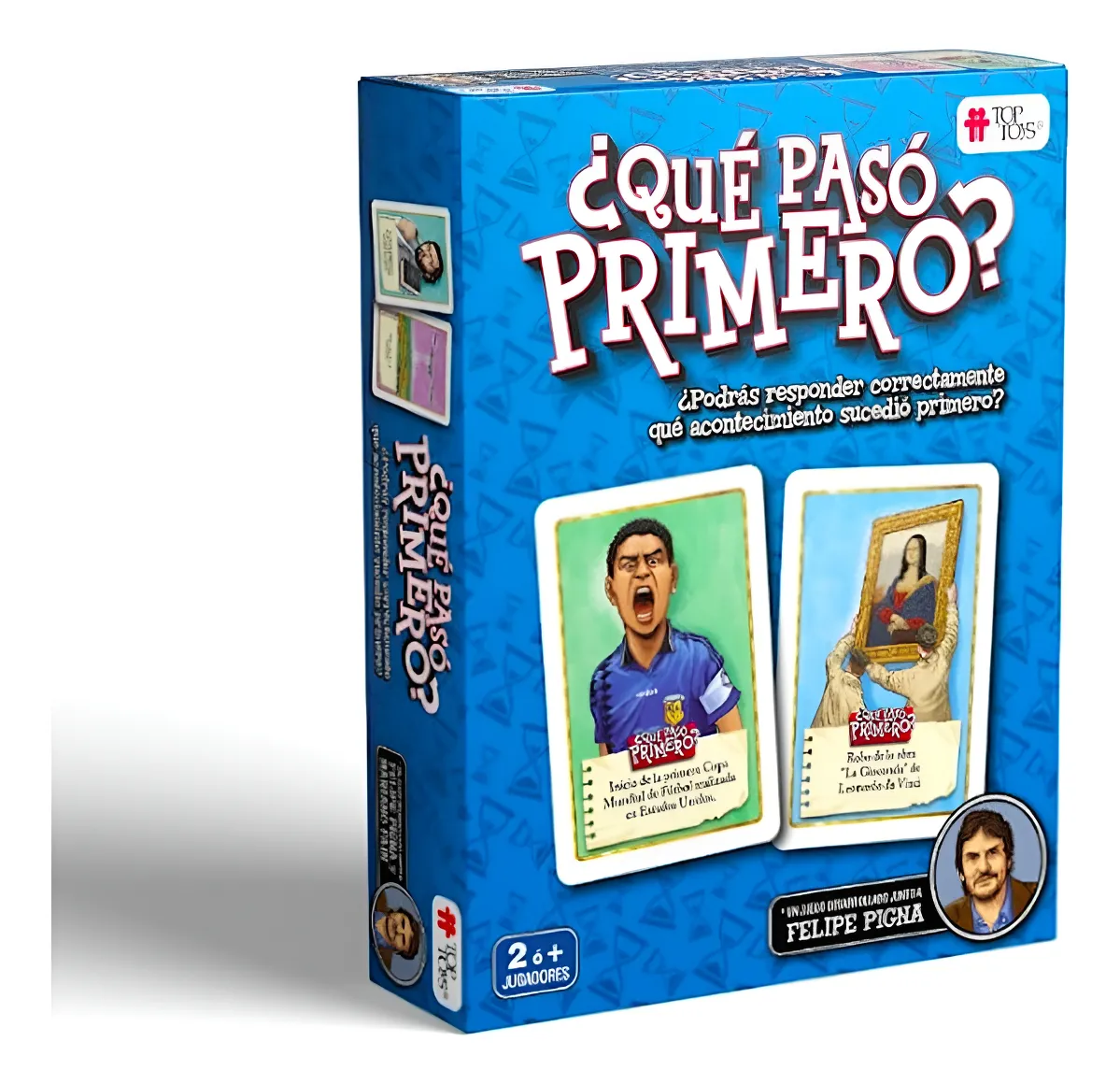 Podrás responder correctamente qué acontecimiento sucedió primero? Se trata de un juego de cartas pensado para la familia y juntadas de amigos, sin complejas reglas, donde ganará quien responda correctamente que sucedió primero leyendo las cartas. Un juego desarrollado junto a Felipe Pigna De 2 o mas jugadores Edad recomendada: +6 años.